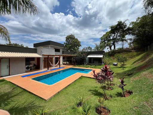Casa exclusiva à venda – 3 quartos, piscina aquecida, área gourmet, arquitetura diferenciada! Se você está procurando uma casa à venda em condomínio fechado, com arquitetura moderna, terreno amplo e integração com a natureza, essa é a oportunidade ideal! Localizada em um dos condomínios mais valorizados da região, essa residência única oferece 1.350m² de terreno plano, todo cercado, com paisagismo impecável e diversas árvores bem distribuídas. 🛏️ 3 dormitórios, sendo 1 suíte 🌿 Terreno amplo e totalmente plano – 1.350m² 🏡 Projeto arquitetônico diferenciado com linhas curvas e fluidez entre os ambientes 🏊♂️ Piscina aquecida com cascata 🔥 Espaço gourmet com churrasqueira e fogão a lenha banheiro externo 🌞 Sistema de aquecimento solar em chuveiros e torneiras 📄 Documentação completa com habite-se – aceita financiamento bancário e FGTS A sala principal impressiona com pé direito duplo, excelente iluminação natural e ambientes integrados, incluindo um espaço rebaixado com lareira. A cozinha planejada oferece funcionalidade e organização. No andar superior, são três quartos bem distribuídos, sendo dois com sacada e um com suíte, além de um banheiro social. O projeto valoriza a integração com o verde, proporcionando um ambiente tranquilo, com um jardim criativo e arborizado – perfeito para quem busca contato com a natureza sem abrir mão do conforto e da praticidade. 📍 Localizada em condomínio fechado com segurança 24h, tranquilidade e fácil acesso às principais vias da cidade.
