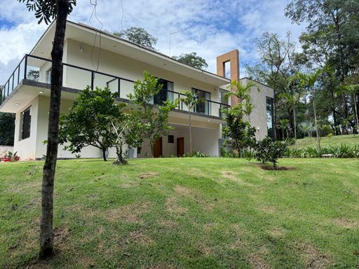 Residência projetada para integrar arquitetura e natureza, situada em um cenário único entre o cerrado e a Mata Atlântica. Com foco na conexão visual e sensorial com a paisagem nativa, o projeto valoriza iluminação natural, ventilação, amplas vistas e uma experiência de vida que celebra o verde ao redor. Uma oportunidade exclusiva para quem busca conforto, tranquilidade e contato direto com o meio ambiente em um dos lugares mais inspiradores de Minas Gerais. 🌿. O paisagismo integra um lago independente, trilhas em meio à área arborizada e até uma capela, criando uma experiência rara de conexão com a natureza. Localizado em condomínio fechado com segurança total, a apenas 35 minutos do BH Shopping, une tranquilidade, exclusividade e fácil acesso. A arquitetura atemporal valoriza materiais nobres e cheios de história: pedra natural, madeira de demolição, azulejos portugueses e peças únicas garimpadas em Diamantina e diversas regiões do Brasil, resultando em ambientes autênticos e acolhedores. O imóvel conta com 5 quartos no total. A casa principal possui pé-direito alto, varanda envidraçada com vista espetacular, 3 suítes e um charmoso espaço gourmet com churrasqueira e fogão a lenha. A área externa oferece ainda quarto independente com escritório e uma casa de hóspedes completa, garantindo conforto e privacidade para receber. Um verdadeiro refúgio para quem busca natureza, sofisticação e qualidade de vida em um dos endereços mais desejados de Casa Branca.