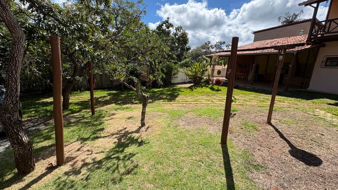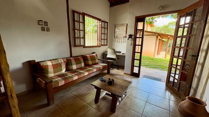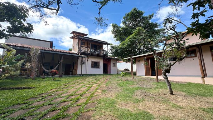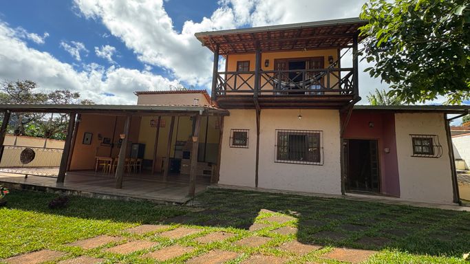 Charmosa casa em estilo rústico com 184m² de área construída em um amplo terreno de 720m², localizada no bairro Casa Branca, em Brumadinho.