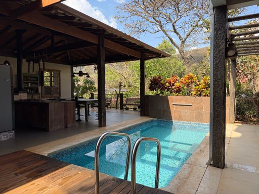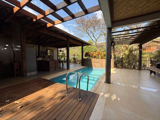 A área externa é um verdadeiro convite ao lazer: piscina, sauna e varanda com vista panorâmica para as montanhas. Um lugar perfeito para relaxar, receber amigos e aproveitar cada momento.