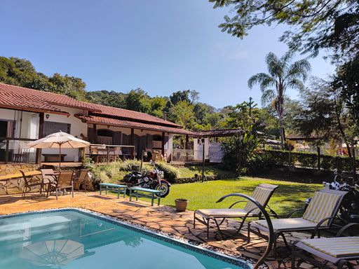 🌳 O terreno possui 2.350 m², com piscina, campinho para peteca, vôlei, futebol e outras atividades, pomar com diversas árvores frutíferas e um riacho passando dentro da propriedade, tornando o espaço ainda mais especial.