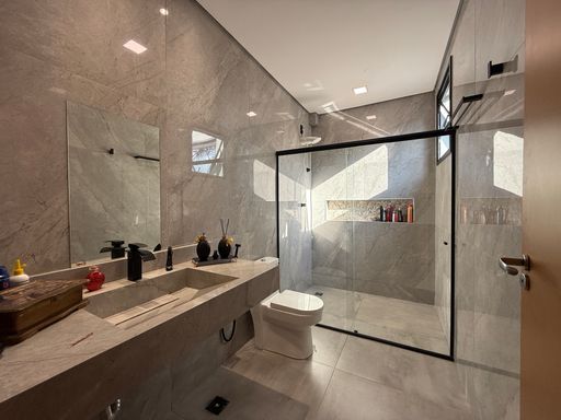 Encante-se com esta casa moderna em condomínio fechado, projetada para oferecer praticidade e elegância.