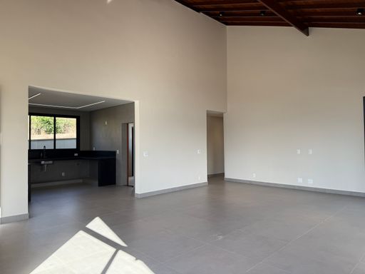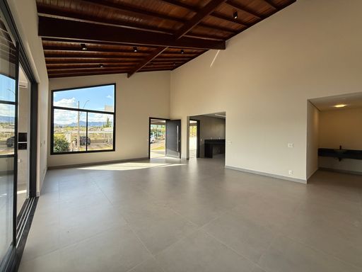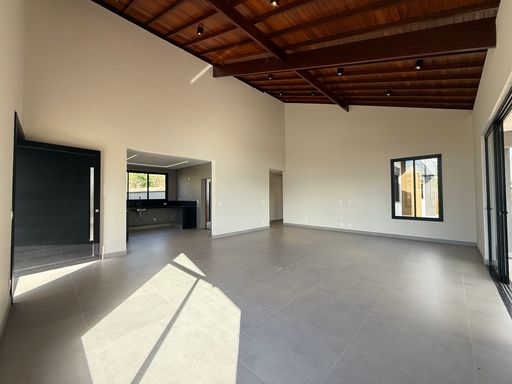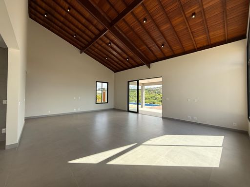 ✔️ Sala ampla com pé-direito alto e um belíssimo forro de madeira, que proporciona aconchego e elegância ao ambiente.
