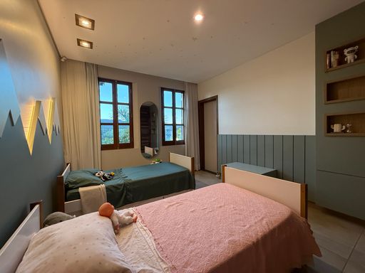Localizada em condomínio fechado com segurança 24 horas, essa residência foi pensada para quem quer viver com tranquilidade e ainda aproveitar uma linda vista lateral para as montanhas e para o pôr do sol todos os dias.