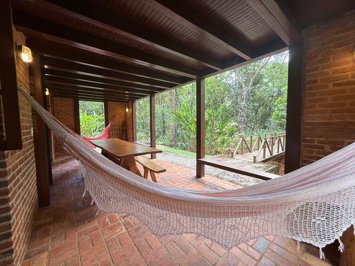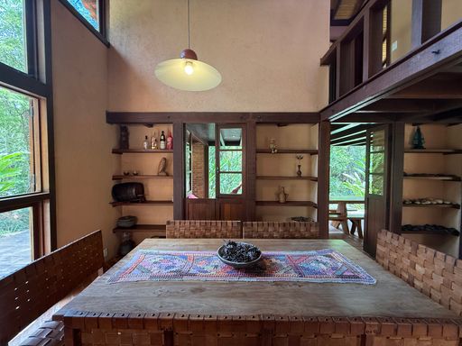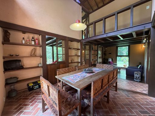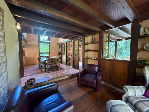Localizada em um terreno amplo de 2.700m², esta casa encanta pela integração com o ambiente natural e pela tranquilidade proporcionada pelo riacho que passa nos fundos da propriedade.