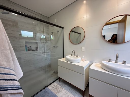 Conta com aquecimento solar nas duchas e torneiras de toda a casa, inclusive no banheiro de serviço, garantindo eficiência e economia.