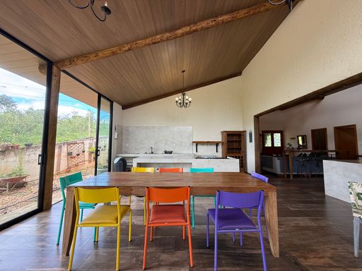 Em um terreno de 1.000m², com aproximadamente 400m² de área construída, esta casa colonial rústica encanta pela arquitetura acolhedora e pela conexão com a natureza.
