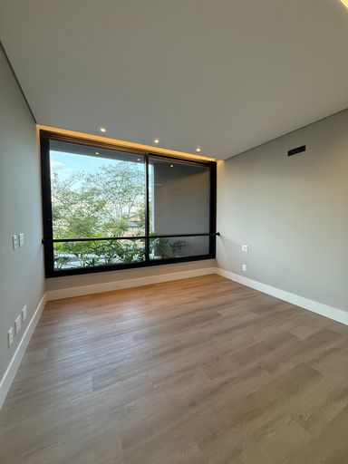 A área social conta com sala ampla com pé-direito duplo, proporcionando excelente iluminação natural e uma sensação única de amplitude. Os ambientes são integrados à cozinha completa, criando um espaço ideal para convivência e recepções.