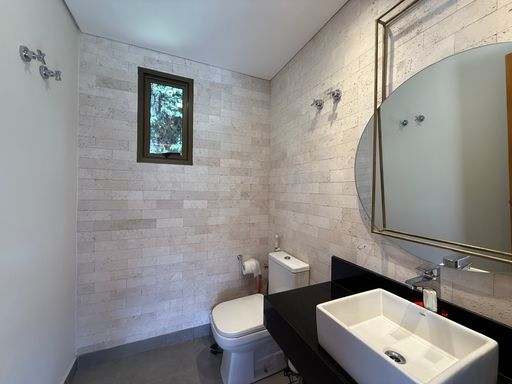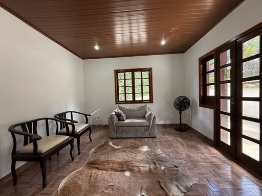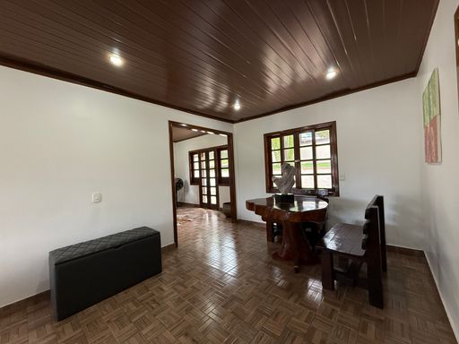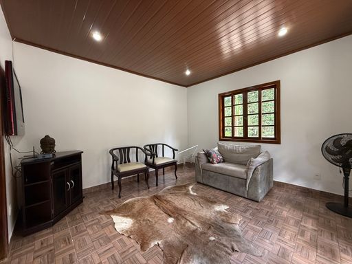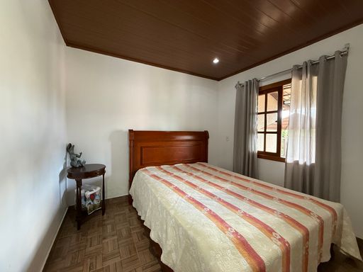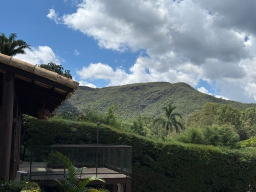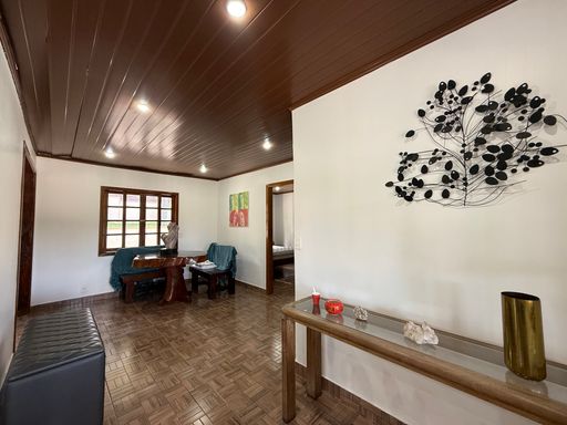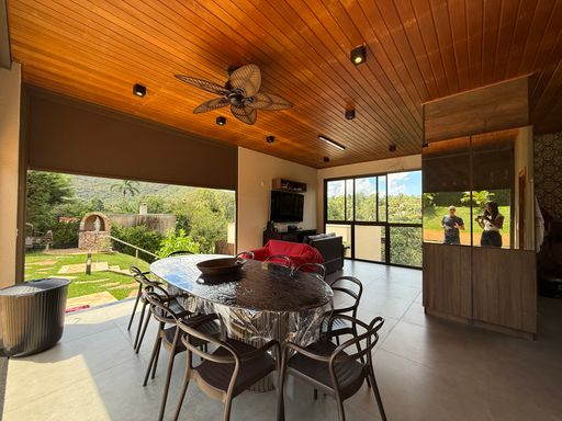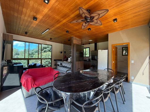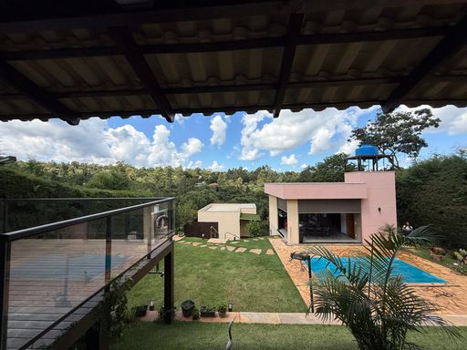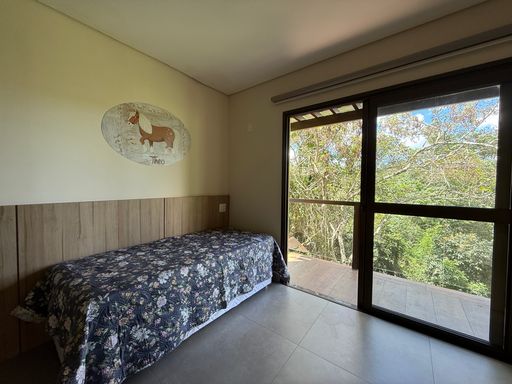 O imóvel possui 5 quartos no total, sendo 3 suítes, com uma casa principal muito bem distribuída e ambientes amplos e aconchegantes. A vista definitiva para a mata de preservação é um dos grandes destaques, trazendo tranquilidade e contato direto com a natureza.