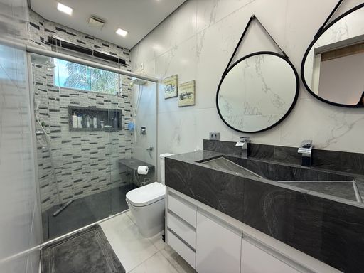Encante-se com esta casa moderna, projetada para quem valoriza conforto, sofisticação e eficiência. Com excelente padrão de acabamento e ambientes amplos, o imóvel impressiona já na entrada com seu pé-direito duplo, trazendo luminosidade e imponência aos espaços sociais.