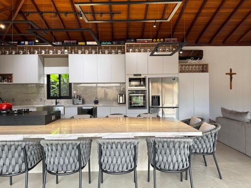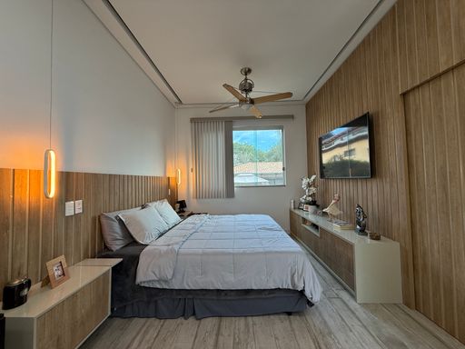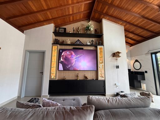 A casa é totalmente climatizada e conta com energia solar fotovoltaica, garantindo economia e sustentabilidade no dia a dia.