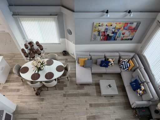 Sala ampla com pé-direito duplo