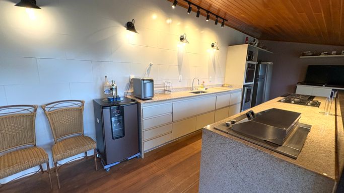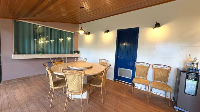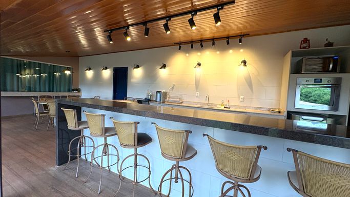 Área de Lazer Completa, com uma suíte, cozinha com lareira e dois banheiros, oferecendo uma excelente opção para receber convidados.
