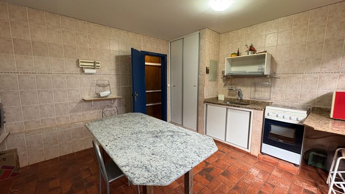 Cozinha equipada com armários planejados, além de uma despensa, garantindo funcionalidade no dia a dia.